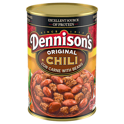 Dennison's Original Chili Con Carne with Beans has all the traditional taste you expect from a slow-cooking chili in a quick, easy-to-prepare 40 oz. can so you can feed the whole family. Dennison's thick and hearty chili is made with wholesome ingredients, such as vine-ripened tomatoes, plump beans, premium beef, and just the right seasonings. Enjoy a delicious variety of flavors, including Vegetarian, Turkey, 99% Fat Free, and Hot Chili.